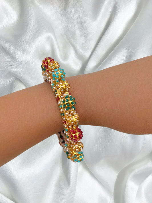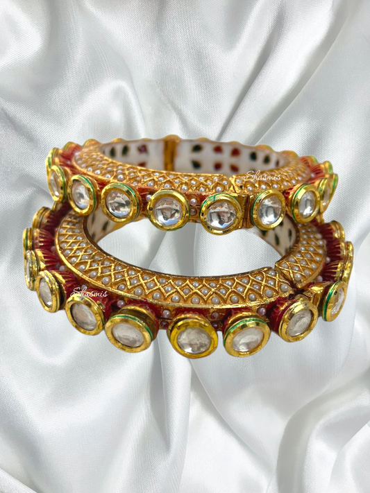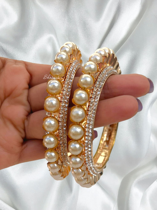 Pearl With Rhine Stone Golden Polish Bangle, Pair