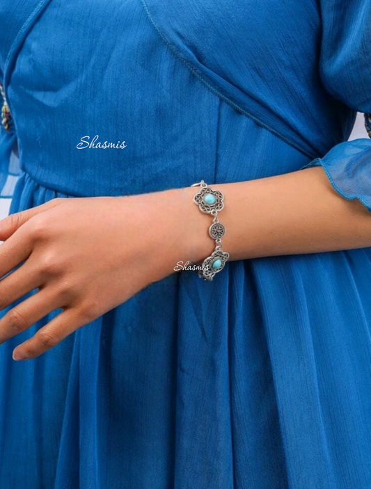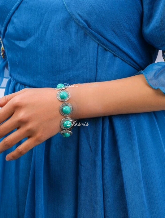 Turquoise Elephant Shape Beads With Golden Heart Charms Bracelets