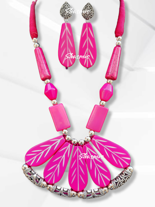 Tibetan Rhinestone Stone Long Necklace With Earrings