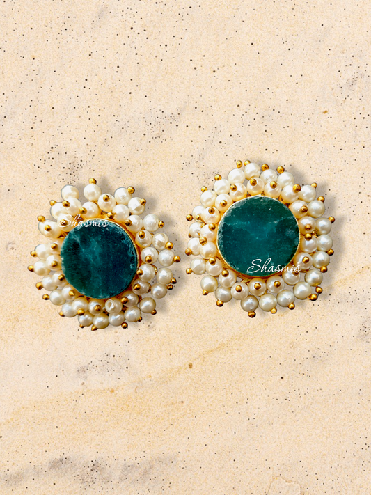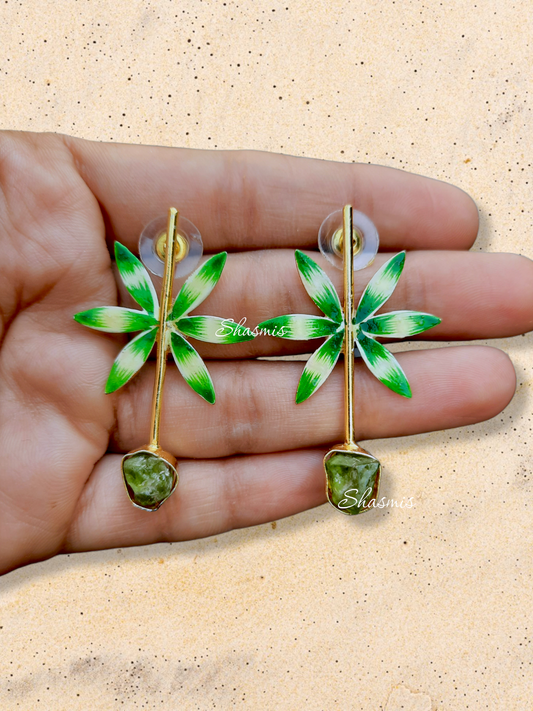 Sap Green Shade Leaf Design Druzy Stone Earrings