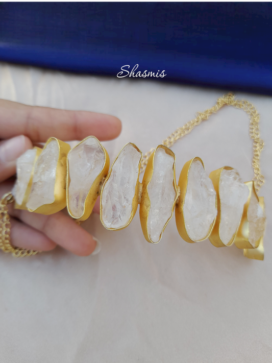 Black and Pink Druzy Stone Gold Plated Long Necklace
