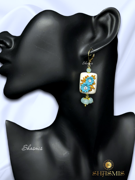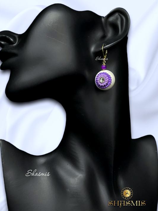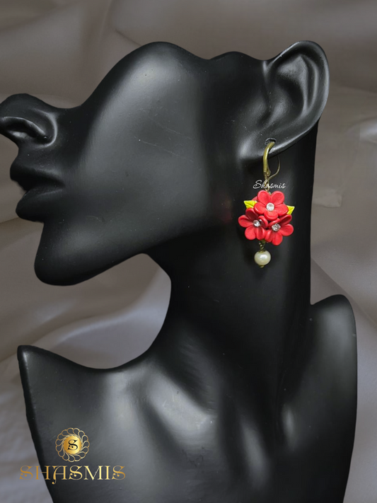 Red Color Flower Design Polymer Clay Handmade Earrings