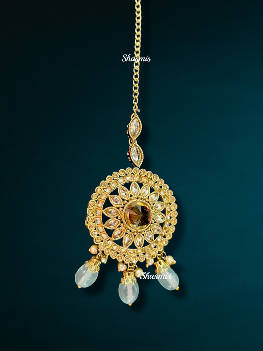 Grey Color Earrings and Mangtika