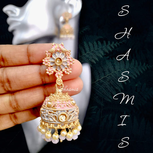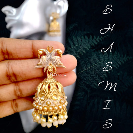 Red Matte Gold Plated Peacock Jhumka Earrings