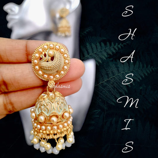 Sky Blue Matte Gold Plated Jhumka Earrings