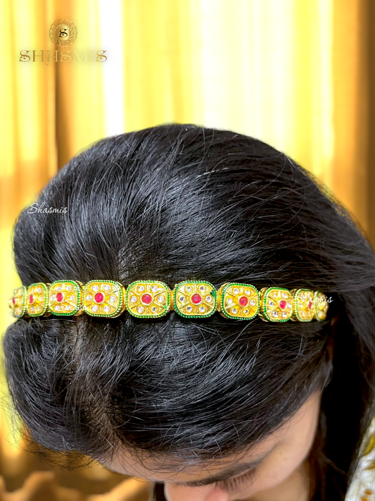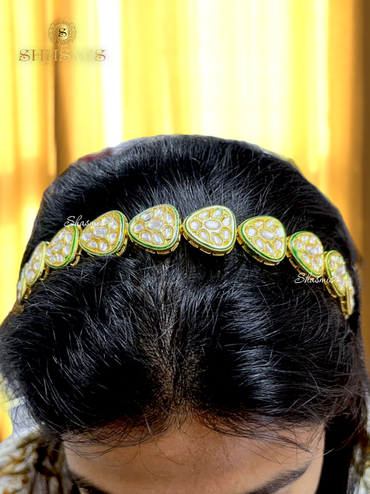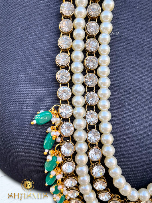 Green Color Beads Glass Kundan Layer Necklace With Earrings