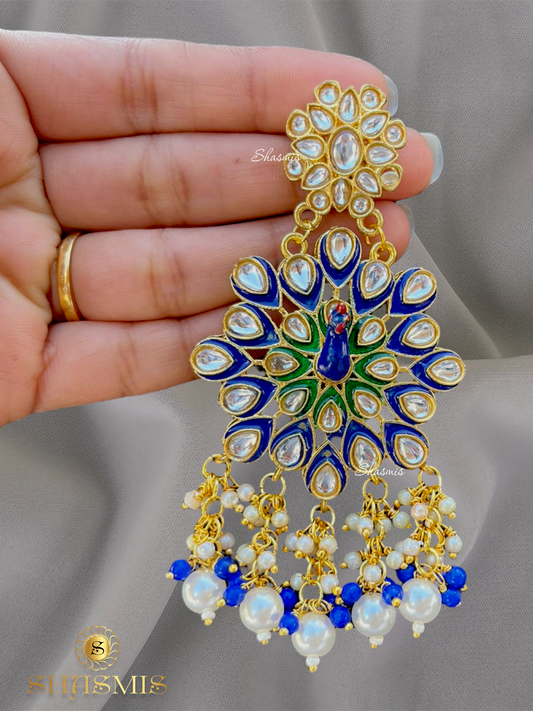 Peacock Design Bridal Necklace and Pearl On Drop With Earrings