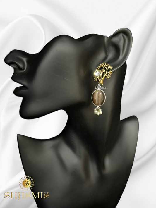 Brown Stone With Gold and Silver Polish Necklace and Earrings