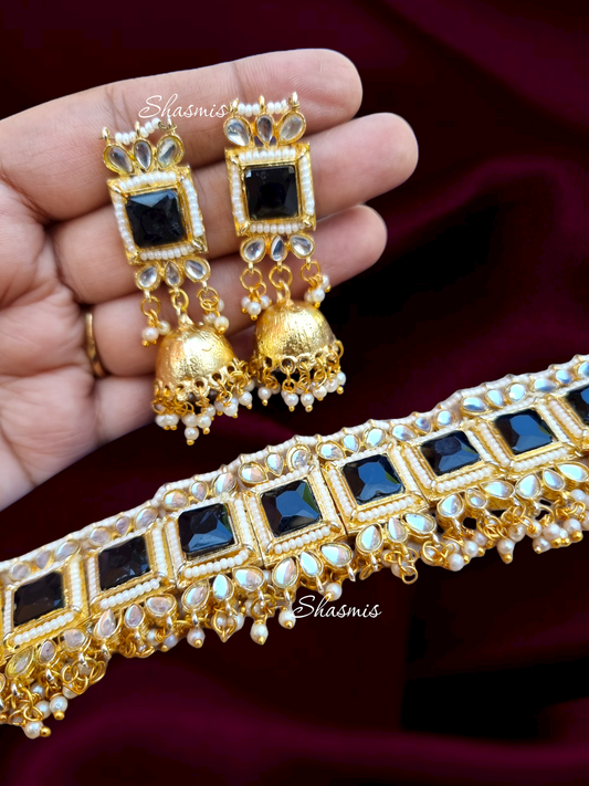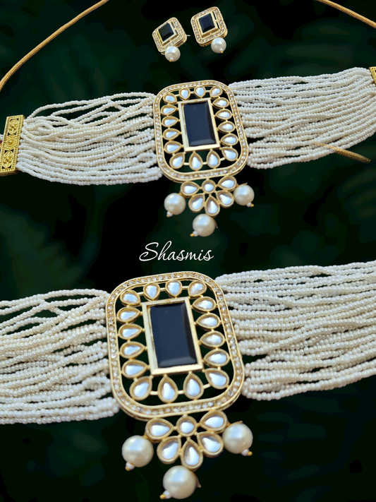 Silver Color Kundan Neck Choker With Earrings and Mangtika