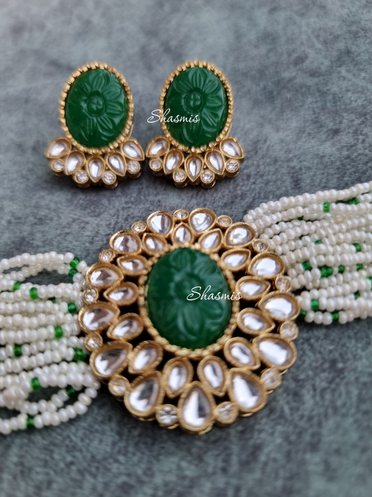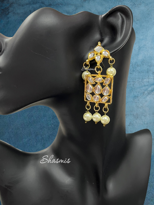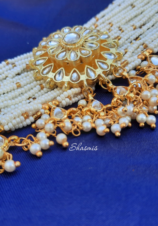 Kundan Earring With Pearls Necklace Combo With Mangtika