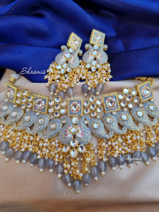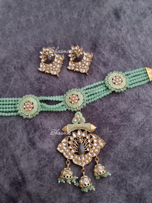 Black Color Peacock Design Diamond Work Choker With Earrings
