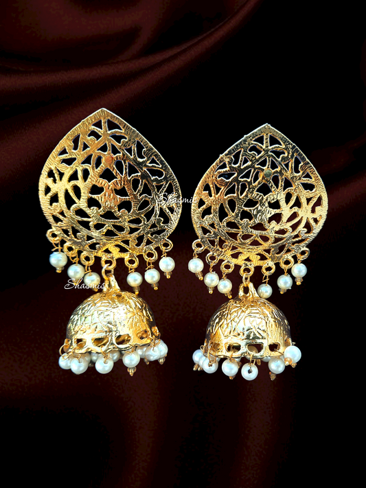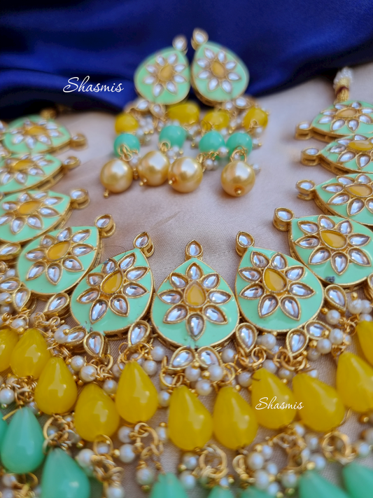 Golden Plated Tear Drop Design Necklace With Earrings and Mangtika
