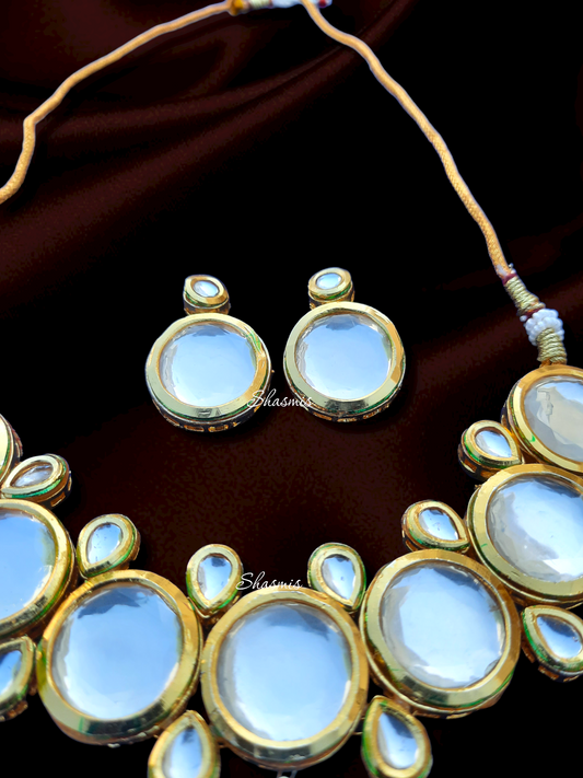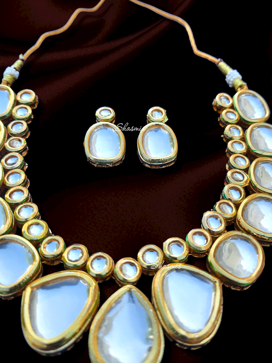 Different Shapes Polki Kundan Design Necklace With Earrings
