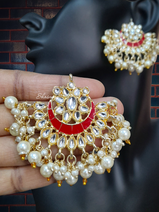 Red and White Color Kundan Pearl Necklace, With Earrings