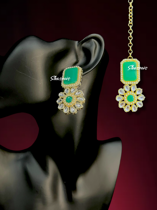 Stone Necklace, Earring And Mangtika With Amazing Flower Design