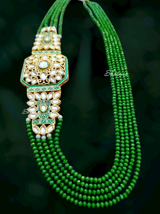 Layered Long Glass Kundan With Earrings
