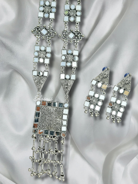 Square Shape Design Sequence Afghani Necklace With Earrings