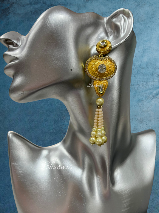 Kundan Beads and Stone Long Necklace With Earrings