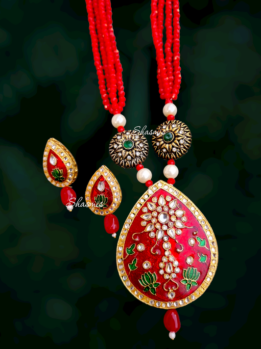 Red Color Design Necklace With Earrings
