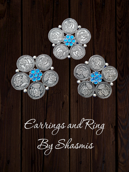 Long Mirror Silver Oxidised Coins On Drop Design Earrings