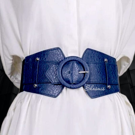 Blue Broad Leather Belt