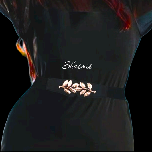 Black Leaf Stretchable Belt, plus Size