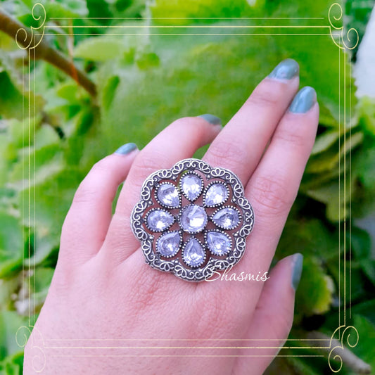 Sold outLotus Design Oxidised Silver Ring