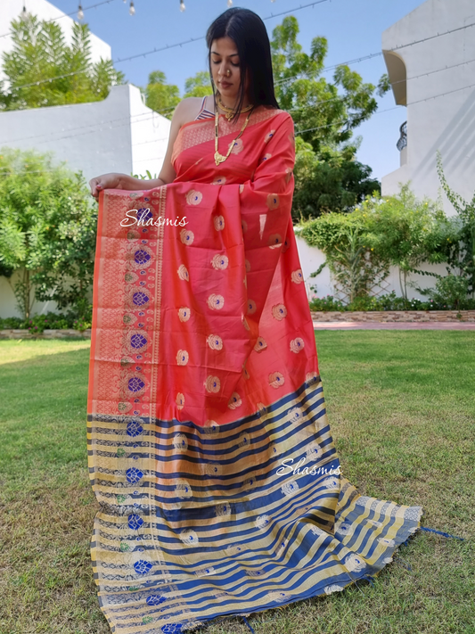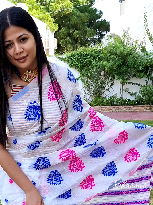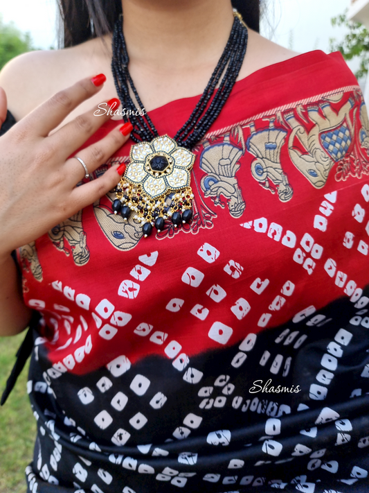 Jaipuri Bandhani Silk Saree With Gold Zari Border