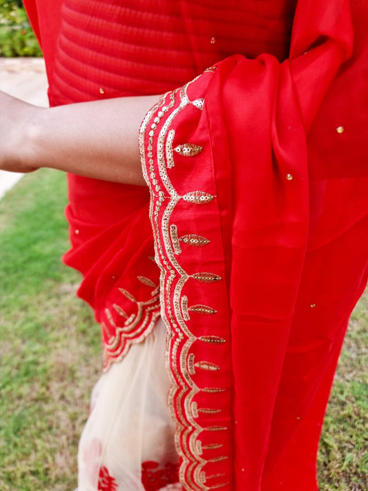 Red Color Georgette Saree With Net and Embroidery