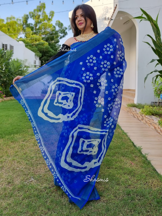 Sold outBlue Color Soft Silk Bandhani Saree