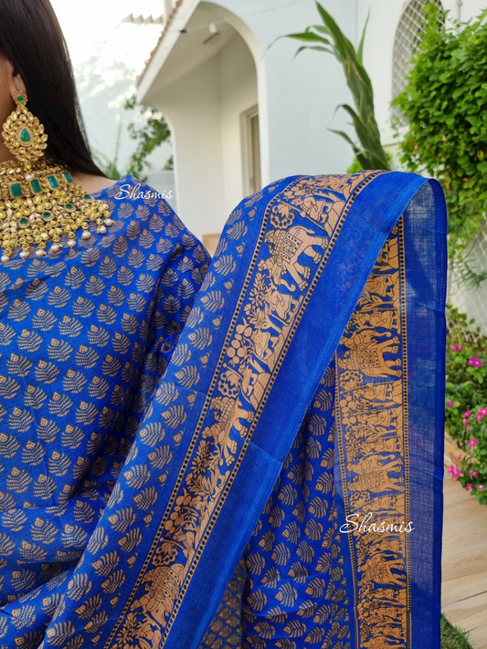 Rama Blue Silk Saree With Zari Work
