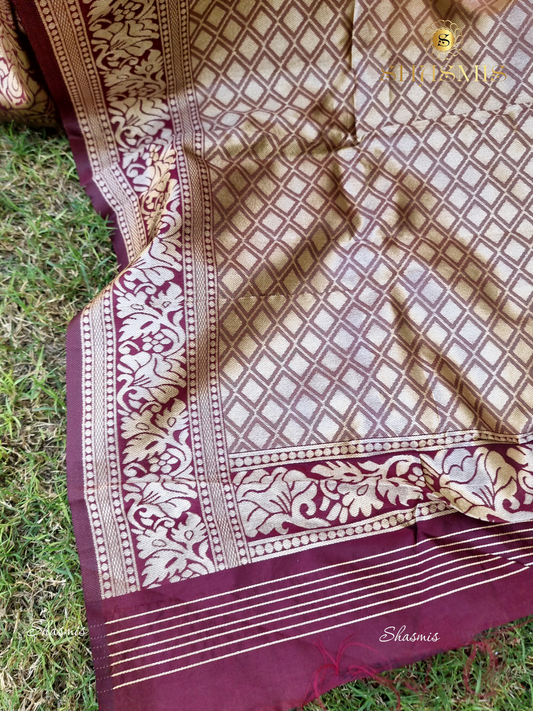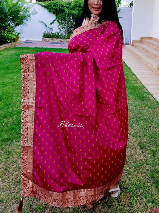 Wine Color Kanjeevaram Silk Blend Saree With Golden Zari Weaving Butas, Fine Quality