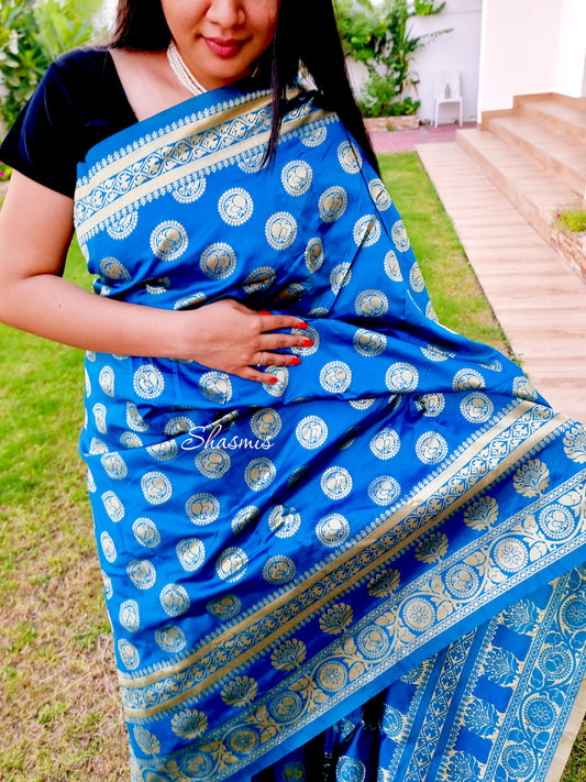 Rama Blue Color Amazing Golden Work Soft Silk Saree