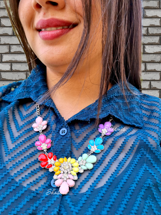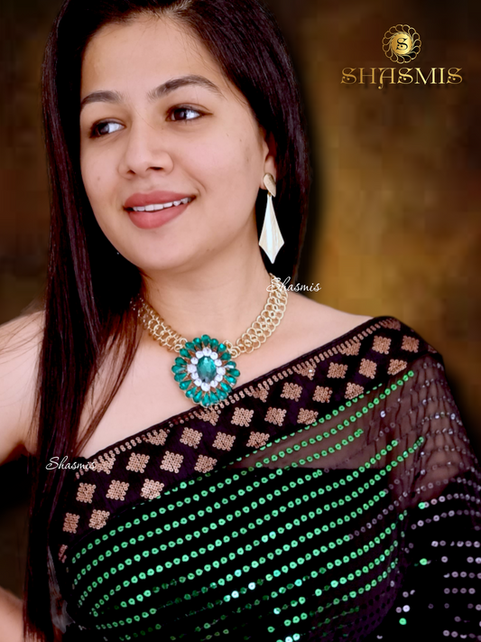 Gold Plated Pearl on Flower With Green Stone Necklace