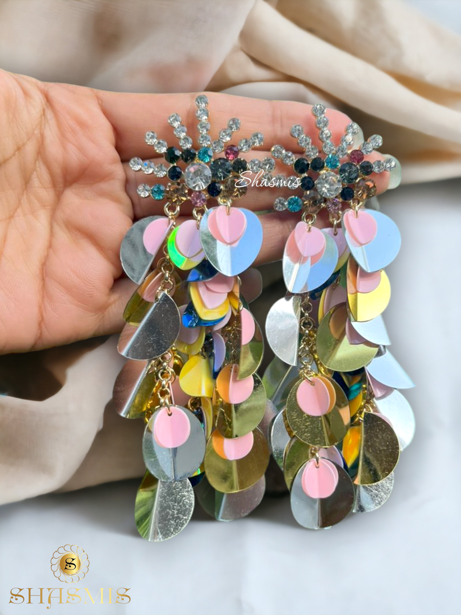 Long Multi Color Rhein stone With Shining Sequence On Drop
